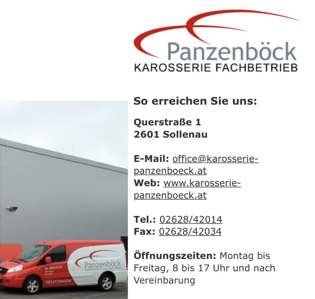 • Für Reparaturen, die von der Firma Panzenböck durchgeführt werden, reduziert sich der vereinbarte Selbstbehalt um Euro 125,- (ausgenommen Scheibentausch und Selbstbehalt im Rahmen der Großschadenkasko)!